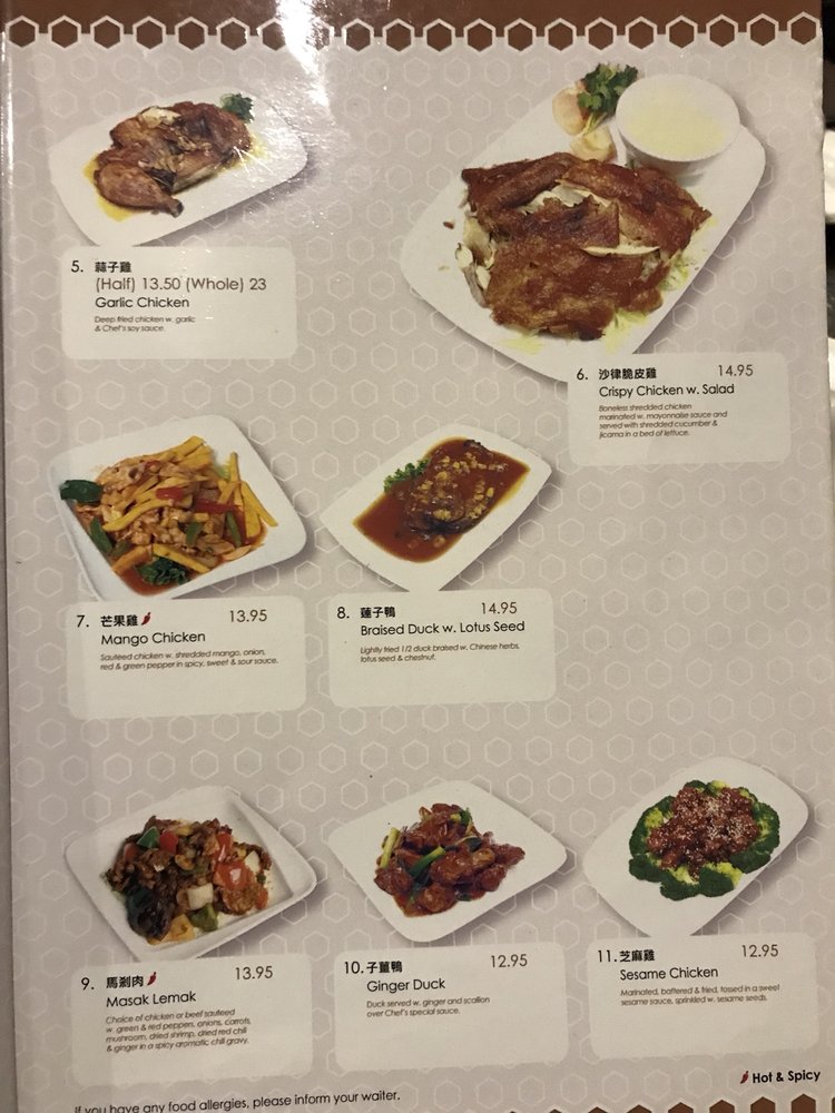 Special egg noodles served in a homemade sauce or broth with ginger, duck meat, vegetables and scallions.