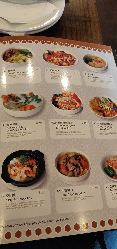 Egg noodles served in a spicy lemongrass coconut curry with fish ball,fish cake tofu and bean curd with minced fish. Hot and spicy.
